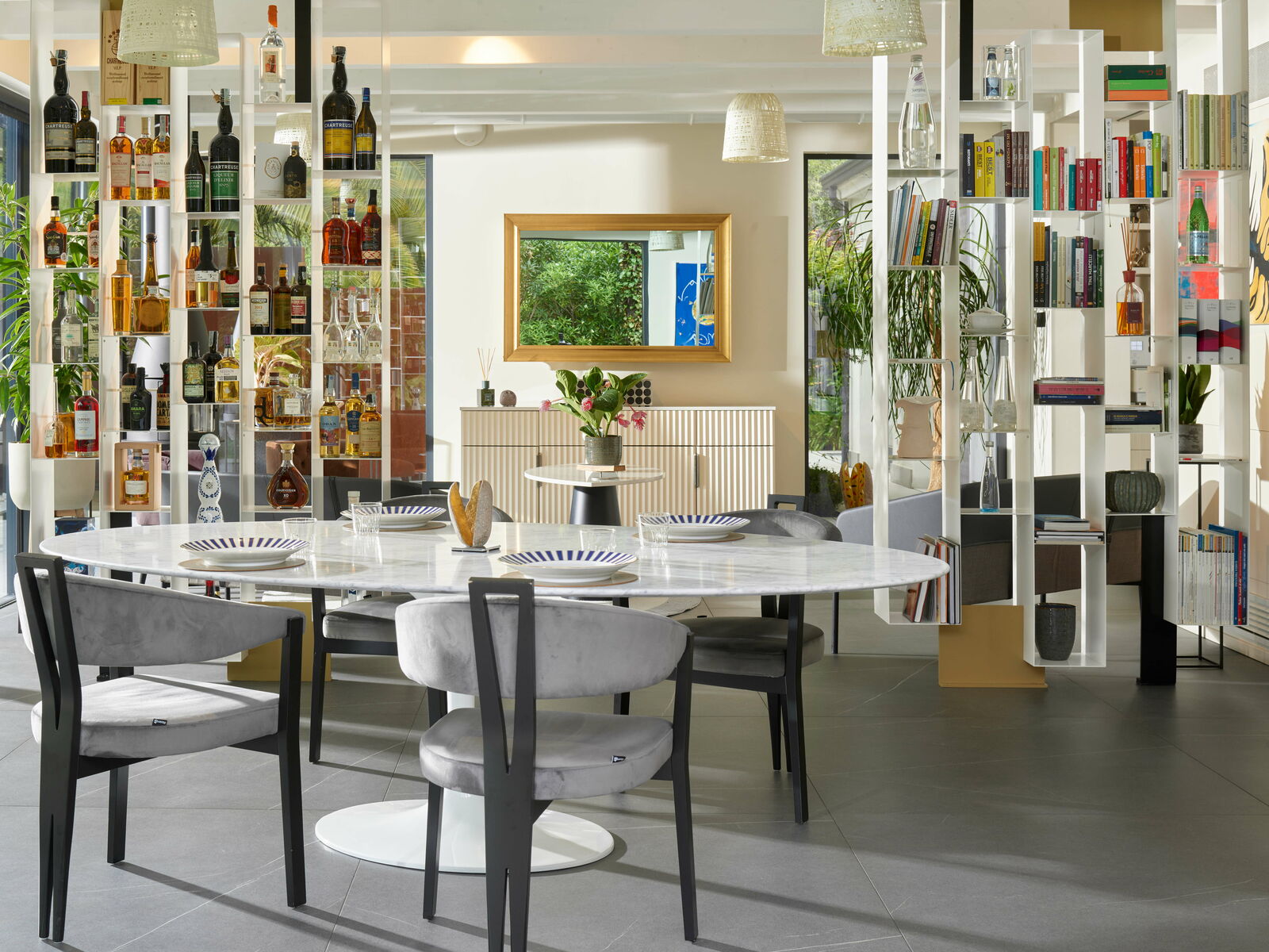 The “Gourmet” and “Dehors” rooms have garden views and are interspersed with small sitting rooms where guests can sip apertifs, coffee or brandy after dinner, as the turntable plays just the right tunes.